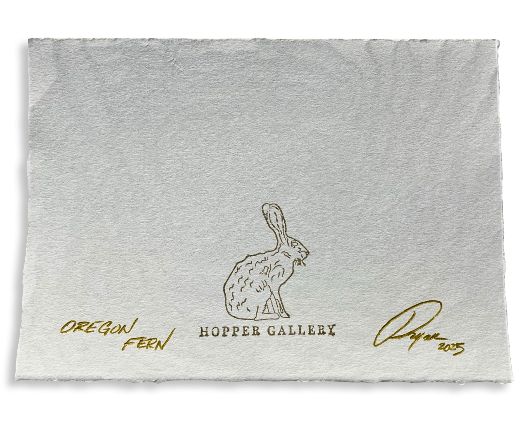 Hand-drawn, hand torn paper with beveled edges, hand-carved and hand-printed using professional quality materials. Printed with Cranfield Gold Ink on Archival Printmaking Paper.