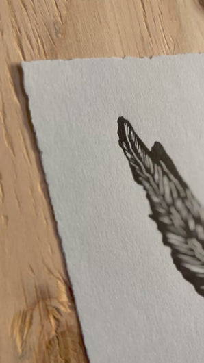 Hand-drawn, hand-carved and hand-printed using professional quality materials.
